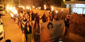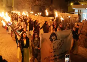 Hezex ilçesinde TJA öncülüğünde yapılan meşaleli Newroz yürüyüşünde Rehşan Demirel'in posteri taşındı Şirnex'ın Hezex (İdil) ilçesinde Özgür Kadın Hareketi (Tevgera...