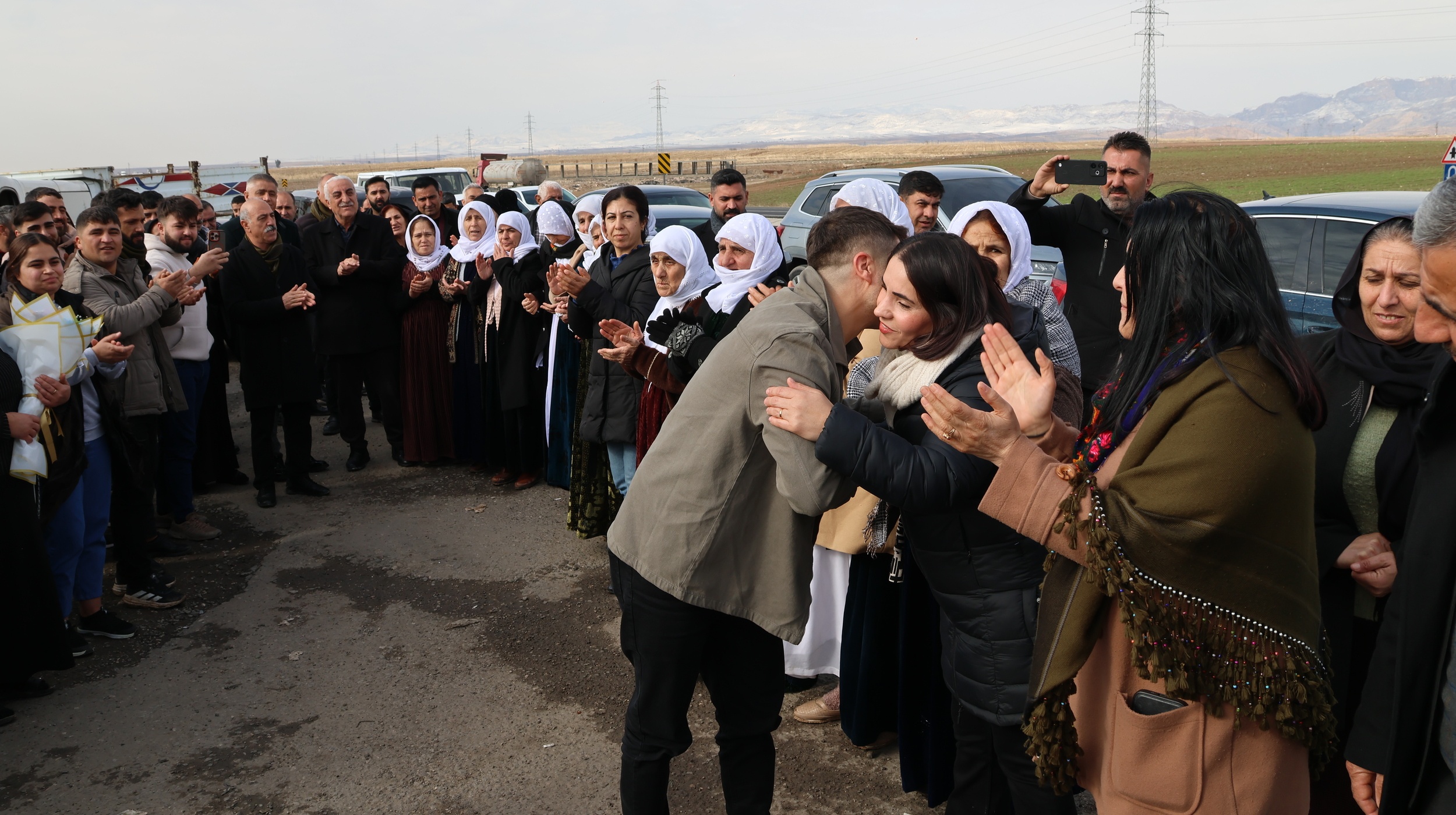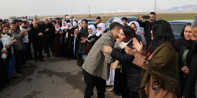 Karşılama “Jin jiyan azadî”, “Bijî berxwedana Rojava” ve “Bijî berxwedana zîndana” sloganları ile son buldu.
