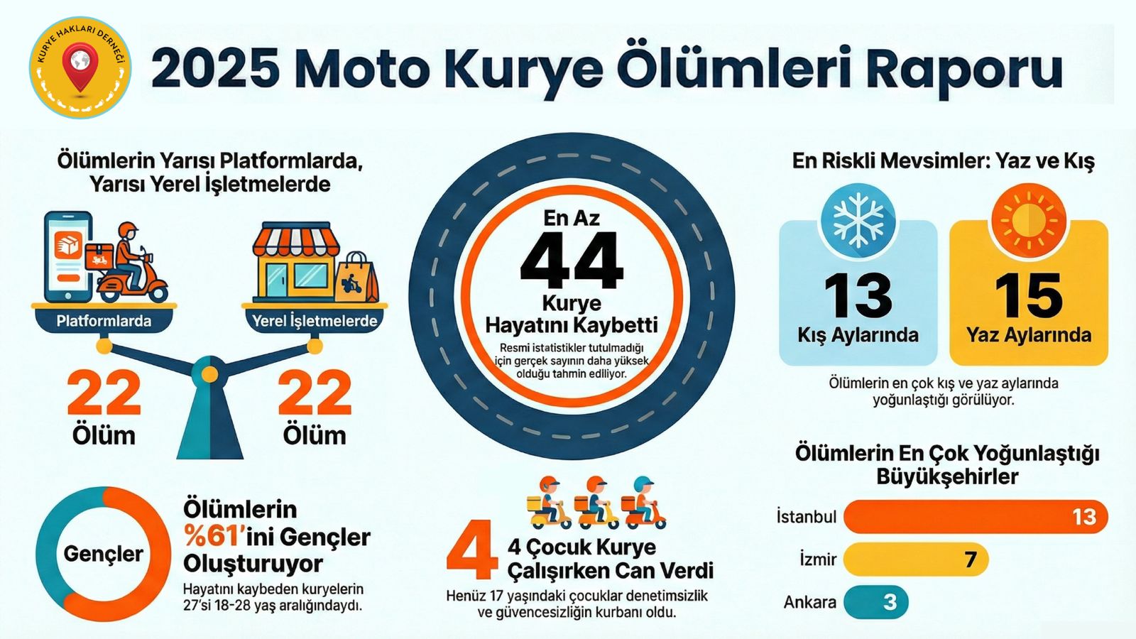 Not: Bu haber, Kurye Hakları Derneği’nin resmi internet sitesinde yayımlanan “Moto Kurye Ölümleri Raporu 2025”ten derlenmiştir. Rapora şu linkten ulaşılabilir: https://kuryehaklari.org/moto-kurye-olumleri-raporu-2025/