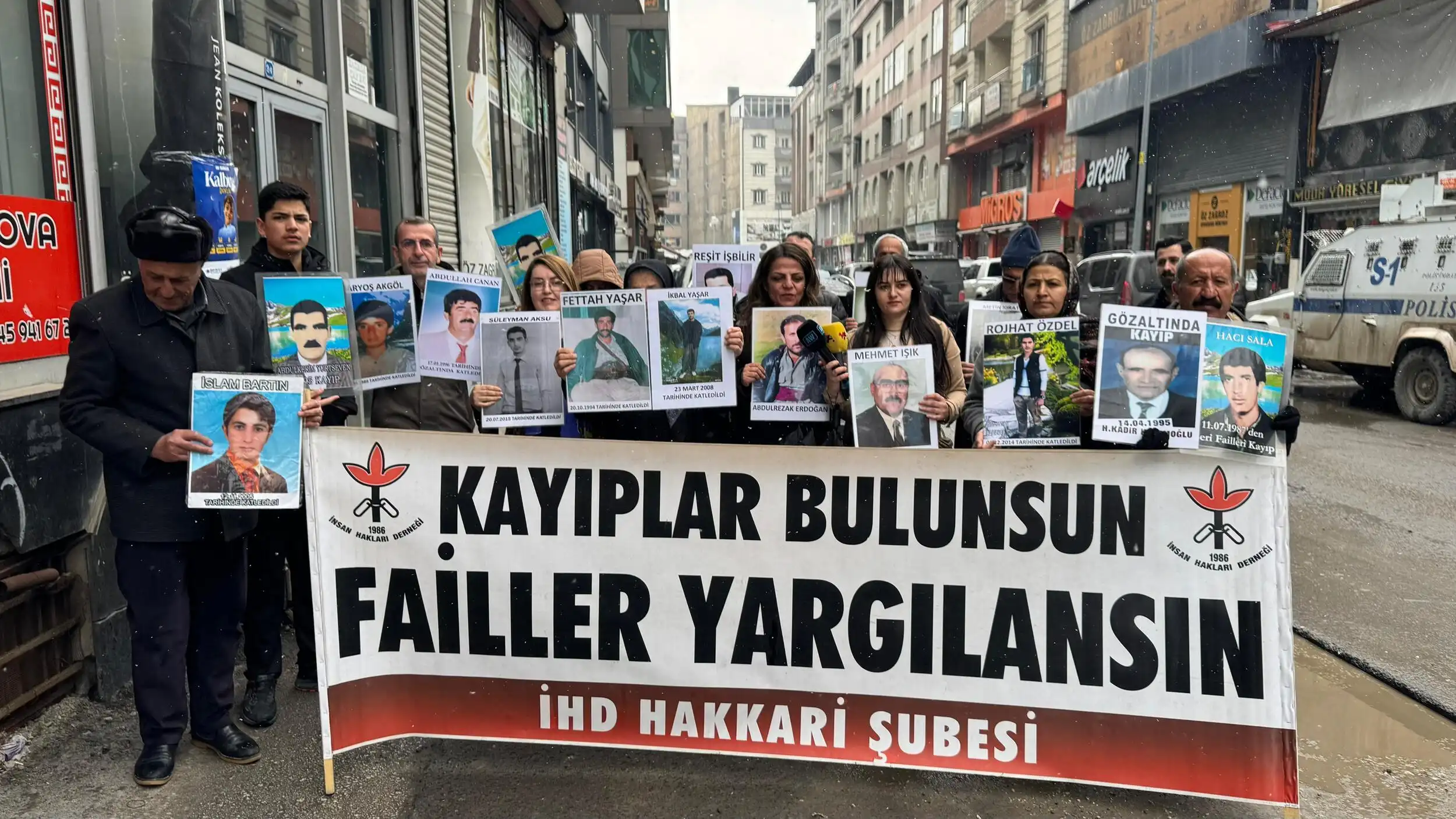 İHD ve kayıp yakınlarının Colemêrg’in (Hakkari) Gever (Yüksekova) ilçesindeki eylem 217’nci haftasında devam etti. Sanat Sokağı’ndaki eylemde gözaltında kaybettirilenlerin fotoğrafları taşınırken, “Kayıplar bulunsun failler yargılansın” pankartı açıldı. Bu haftaki eylemde 10 Eylül 1996’da katledilen Hatice Atalay’ın failleri soruldu. Açıklamayı İHD Colemêrg Şubesi Eşbaşkanı Sibel Çapraz okudu.