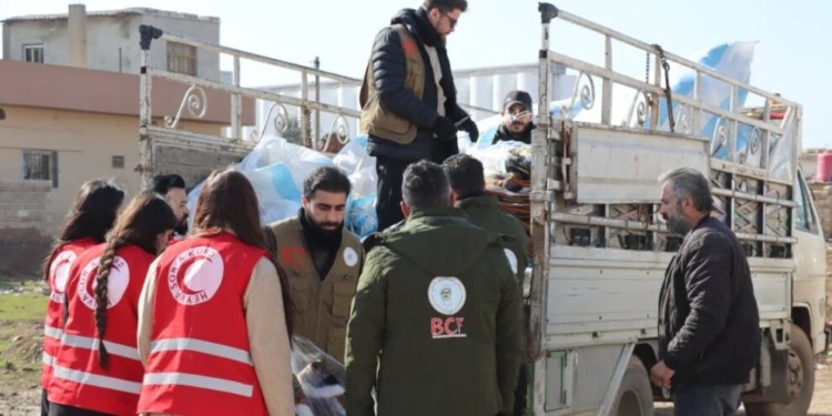 300 genç, Tebqa ve Reqa’dan Cizîrê Kantonu kentlerine geçen Efrîn ve Şehba göçmenlerine yardım ulaştırmak amacıyla Heyva Sor a Kurd üyeleriyle birlikte planlama yapıyor ve sahada ortak çalışmalar yürütüyor.