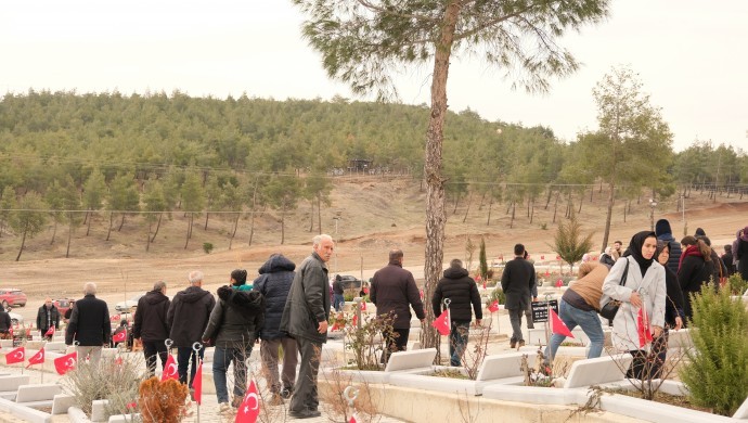 6 Şubat 2023 depremlerinin üçüncü yılında depremin merkez üssü Mereş’te yaşamını yitirenler mezarları başında anıldı