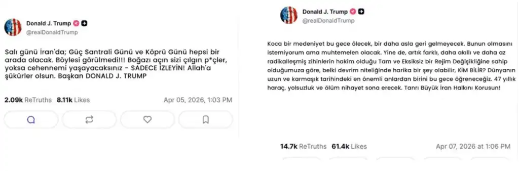 Kısaca WSJ gazetesi, Trump’ın saldırganlığının ve aşağıda yer alan küfürlü açıklamalarının, ABD ve İsrail’in savaşı kaybettiğinin dolaylı bir itirafı olduğunu söylüyor.