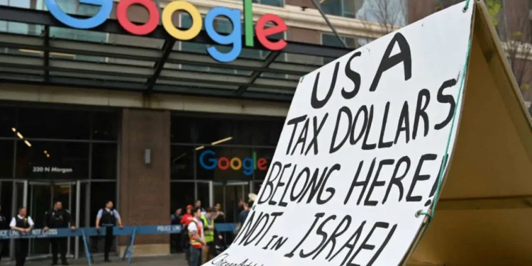Google’ın Chicago genel merkezi önünde toplanan ve aralarında ABD Filistin Toplum Ağı’nın da (USPCN) bulunduğu sivil toplum kuruluşları; İsrail’e yapılan askeri yardımın kesilmesi, Ortadoğu’daki ABD askerlerinin geri çekilmesi ve göçmen haklarının korunması talebiyle bir miting düzenledi.