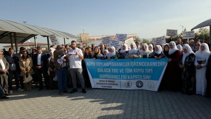 Adana ve Mersin Demokratik Kurumlar Platformu, cezaevlerinde devam eden hak ihlallerine karşı Suluca 1 No’lu Yüksek Güvenlikli Cezaevi önünde açıklama yaptı. Açıklamada, Özgürlük İçin Hukukçular Derneği Adana Temsilcisi Aziz Sari, son yıllarda ardı ardına inşa edilen S, Y ve yüksek güvenlikli cezaevlerinde tutsakların tamamen yalıtılmış, insanlık dışı koşullara mahkûm edildiğini belirtti.