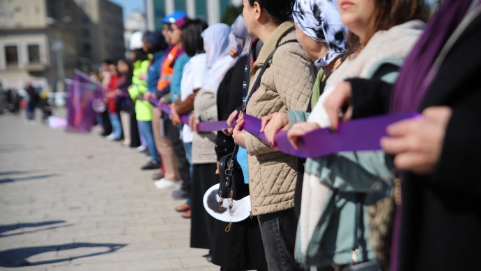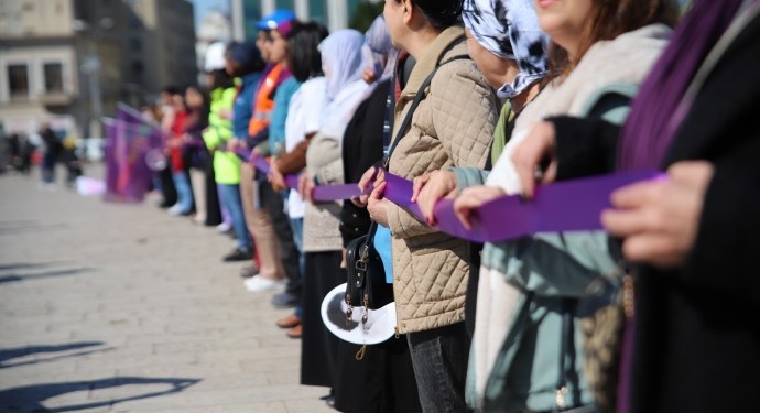 Adana’da kadınlar, Taşköprü üzerinde kadın zinciri oluşturdu