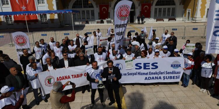 Adana’da 14 Mart Tıp Bayramı’nda ‘Beyaz Yürüyüş’ gerçekleştiren sağlık emekçiler, hükümetten 14 talepte bulundu