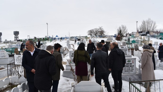 MEBYA-DER öncülüğünde Agirî’de Fatih ve Yüzüncü Yıl Mezarlığı’nda, özgürlük mücadelesinde yaşamını yitirenlerin mezarları Ramazan Bayramı vesilesiyle ziyaret edildi. Ziyarete Halkların Eşitlik ve Demokrasi Partisi (DEM Parti) Agırî Milletvekili Nejla Demir, siyasi parti temsilcileri ve aileler katıldı. Ziyaret kapsamında dualar okundu.