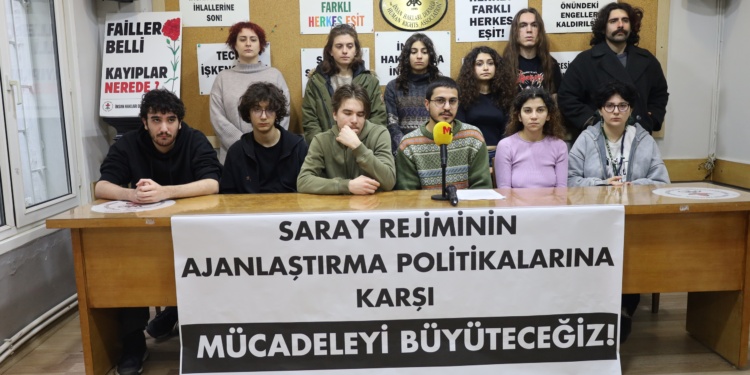 Özgür Üniversite Hareketi, öğrencilerin Kredi Yurtla Kurumu (KYK) bursuna gelen zamma karşı 6 Ocak’ta yaptıkları eylemin ardından polisin gözaltına aldığı öğrencilere ajanlık dayatmasında bulunmasına ilişkin basın toplantısı düzenledi. İnsan Hakları Derneği (İHD) İstanbul Şubesi’nde düzenlenen toplantıda “Saray rejiminin ajanlaştırma politikalarına karşı mücadeleyi büyüteceğiz!” pankartı yer aldı.