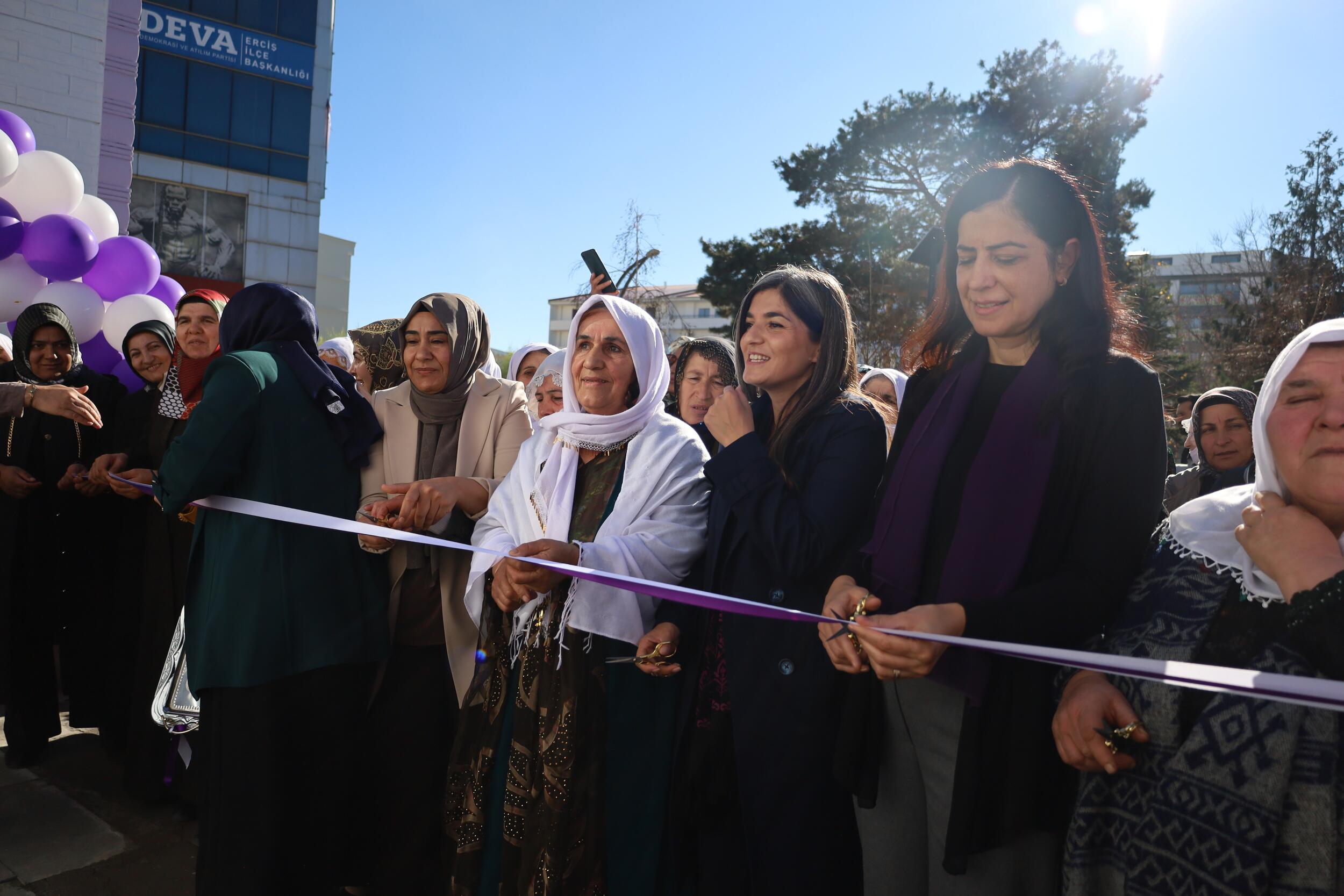 Wan’da Êrdiş (Erciş) Belediyesi tarafından yapılan Delal Kadın Yaşam Merkezi ve Kadın Emek Pazarı’nın açılışı gerçekleştirildi. Açılış öncesi kadınlar DEM Parti Erdîş ilçe binasından yaşam merkezine kadar sloganlarla yürüyüş gerçekleştirdi. Açılışa siyasi parti ve sivil toplum örgütü temsilcileri ile ve çok sayıda kadın katıldı.
