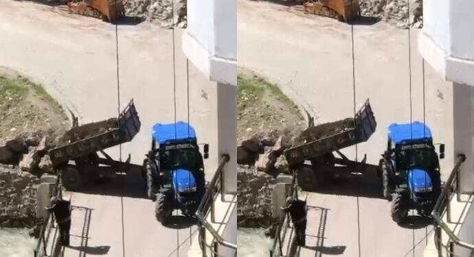 Şirnex’te Qileban (Uludere) Belediyesi’ni taşımalı seçmenlerle gasp eden AKP’li belediyenin, Rapin (Yeşilyuva) Mahallesi’nde traktör ile topladığı kömür küllerini ilçe merkezinden geçen dereye döktüğü anlar kaydedildi. Belediyeye bağlı Temizlik İşleri Müdürlüğü ekiplerinin kömür küllerini dereye döktüğü anlar yurttaşlar tarafından cep telefonu ile görüntülendi.