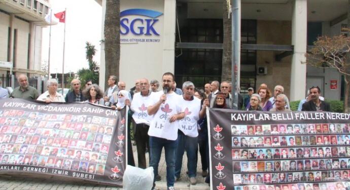 İnsan Hakları Derneği (İHD) İzmir Şubesi üyeleri, 2 haftada bir “Kayıplar bulunsun, failler yargılansın” talebiyle gerçekleştirdiği eylemlerinde bu hafta 7 Haziran 1995 yılında gözaltına alındıktan sonra kaybedilen İHD üyesi Edip Aksoy ve Orhan Cingöz’ün akıbetini sordu.