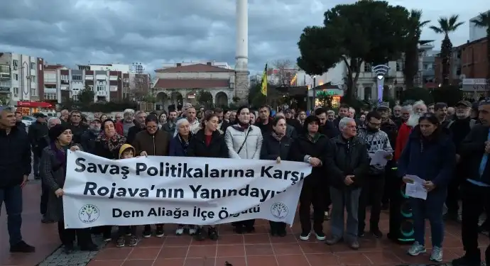 Aliağa’da Rojava’ya saldırılara tepki: Kobanê kuşatması insanlık suçudur