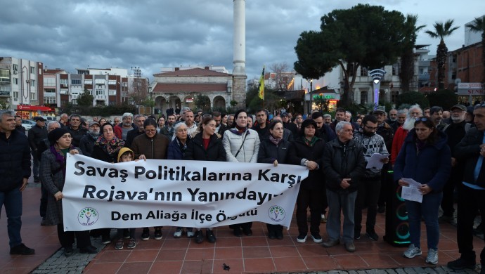 DEM Parti Aliağa İlçe Örgütü, Rojava’ya yönelik saldırıları Aliağa Demokrasi Meydanı’nda protesto etti. Yapılan açıklamada, Rojava’daki çok kimlikli yaşam modelinin hedef alındığı vurgulanarak, uluslararası güçlerin sessizliğinin saldırıların sürmesine zemin hazırladığı ifade edildi