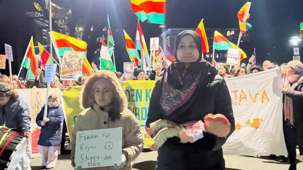 Almanya’da binler Rojava’ya dönük saldırıları protesto etmek için NATO binasına yürüdü