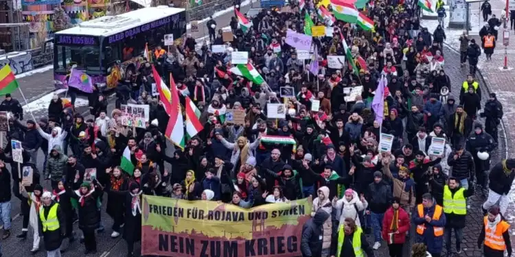 Hamburg Demokratik Kürt Halk Meclisi (DKHM) öncülüğünde, HTŞ-DAİŞ ve Türkiye güdümündeki çetelerin Rojava ve Kuzey-Doğu Suriye’ye yönelik saldırılarını protesto etmek amacıyla Hamburg’da kitlesel bir yürüyüş düzenlendi. On binlerin katıldığı yürüyüşte, “Rojava Vietnam’dır, Rojava Kürdistan’dır” mesajı öne çıktı.