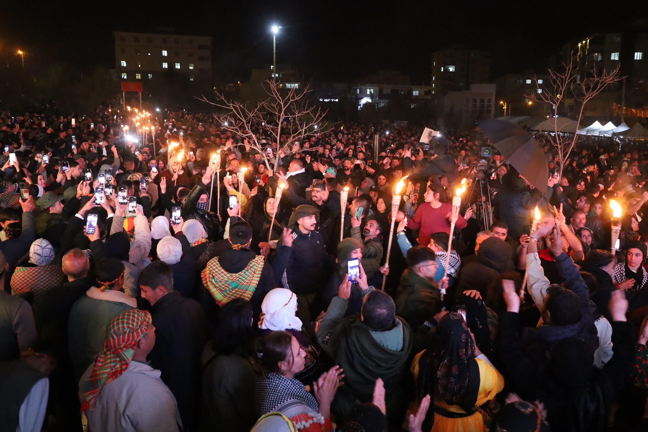 Kürdistan ve Türkiye’nin dört bir yanından gelen binlerce kişi, Kürt Halk Önderi Abdullah Öcalan’ın doğum gününü kutladı. Gün boyu süren etkinliklerin ardından akşam saatlerinde sahne alan sanatçı Özlem Bağlayan ve Sipan Xelat’ın seslendirdiği şarkılara eşlik eden binlerce kişi, “Bijî Serok Apo”, “Rojbûna te pîroz be ey Serok Apo” sloganlarıyla halaya durdu.