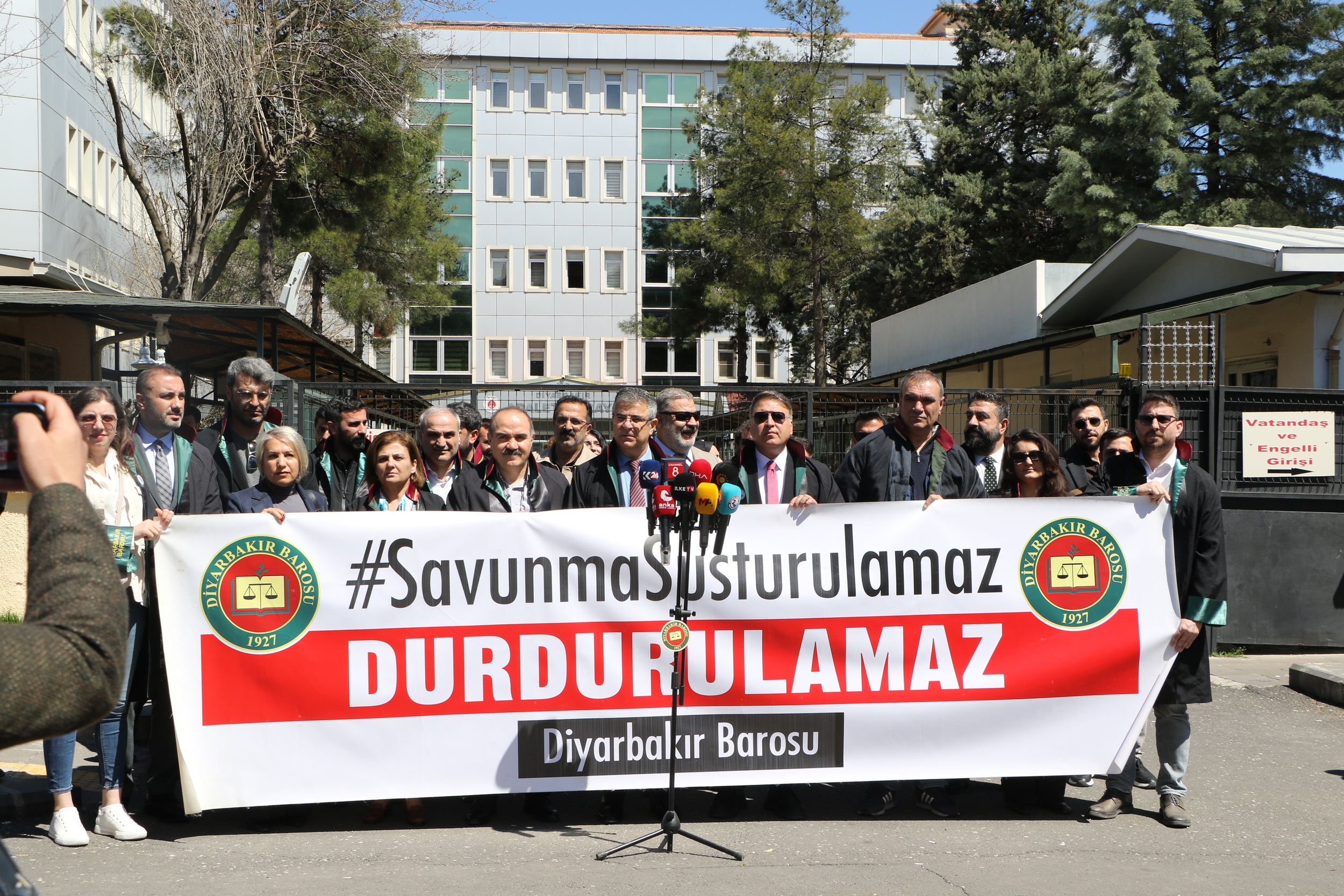 Amed Barosu da Diyarbakır Adliyesi önünde açıklama yaptı. “Savunma susturulamaz, durdurulamaz” pankartının açıklamada konuşan Amed Baro Başkanı Abdulkadir Güleç, “Bu yıl da Avukatlar Günü’nü savunma hakkının ve baroların baskı altında olduğu bir ortamda karşılıyoruz” dedi.
