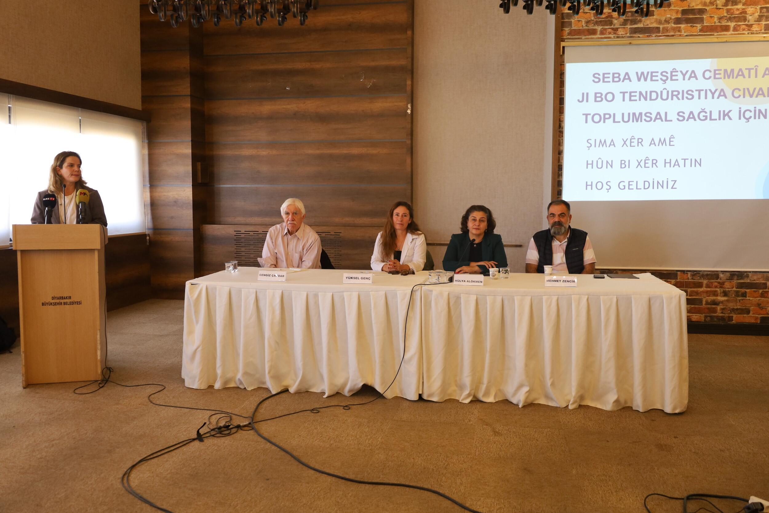 Sağlık meslek örgütleri tarafından “Özgür yaşam, sağlıklı toplum” şiarıyla “Toplumsal Sağlık İçin Barış” paneli düzenlendi. ÇandAmed Kongre Merkezi’nde düzenlenen panele, çok sayıda siyasi parti ile sivil toplum örgütü temsilcisi katıldı. Moderatörlüğünü Özgür Kadın Hareketi (Tevgera Jinen Azad-TJA) aktivisti Hülya Alökmen’in yaptığı panele, Halk Sağlığı Uzmanı Mehmet Zencir, SAMER Saha Araştırmaları Merkezi Koordinatörü Yüksel Genç ile Halkların Eşitlik ve Demokrasi Partisi (DEM Parti) Milletvekili Cengiz Çandar panelist olarak katıldı.