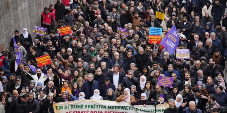 Amed’de sokağa çıkan on binler, Kürtlerin hakları güvenceye alınmadan sokaklardan ayrılmayacaklarını kaydetti