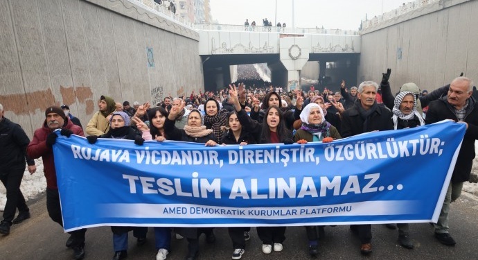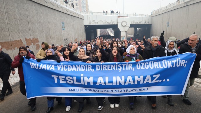 8 Ocak’ta Amed’te de düzenlenen kitlesel yürüyüşte yer alan kadınlar, saldırılara tepki göstererek, direniş mesajı verdi. Dayanışmanın büyütülmesi çağrısında bulunan Esma Kaplan, “Kürt halkı gözünü açsın ve bu katliamları görsün. Tüm Kürtler Rojava halkının arkasında durmalı. Biz bu saldırıları hiçbir şekilde kabul etmiyoruz. Kürt halkı direnmeli. Rojava bu saldırılarla düşmeyecek. Kürt halkı bu konuda duyarlı olmalı ve Rojava’nın yanında olmalı” dedi.