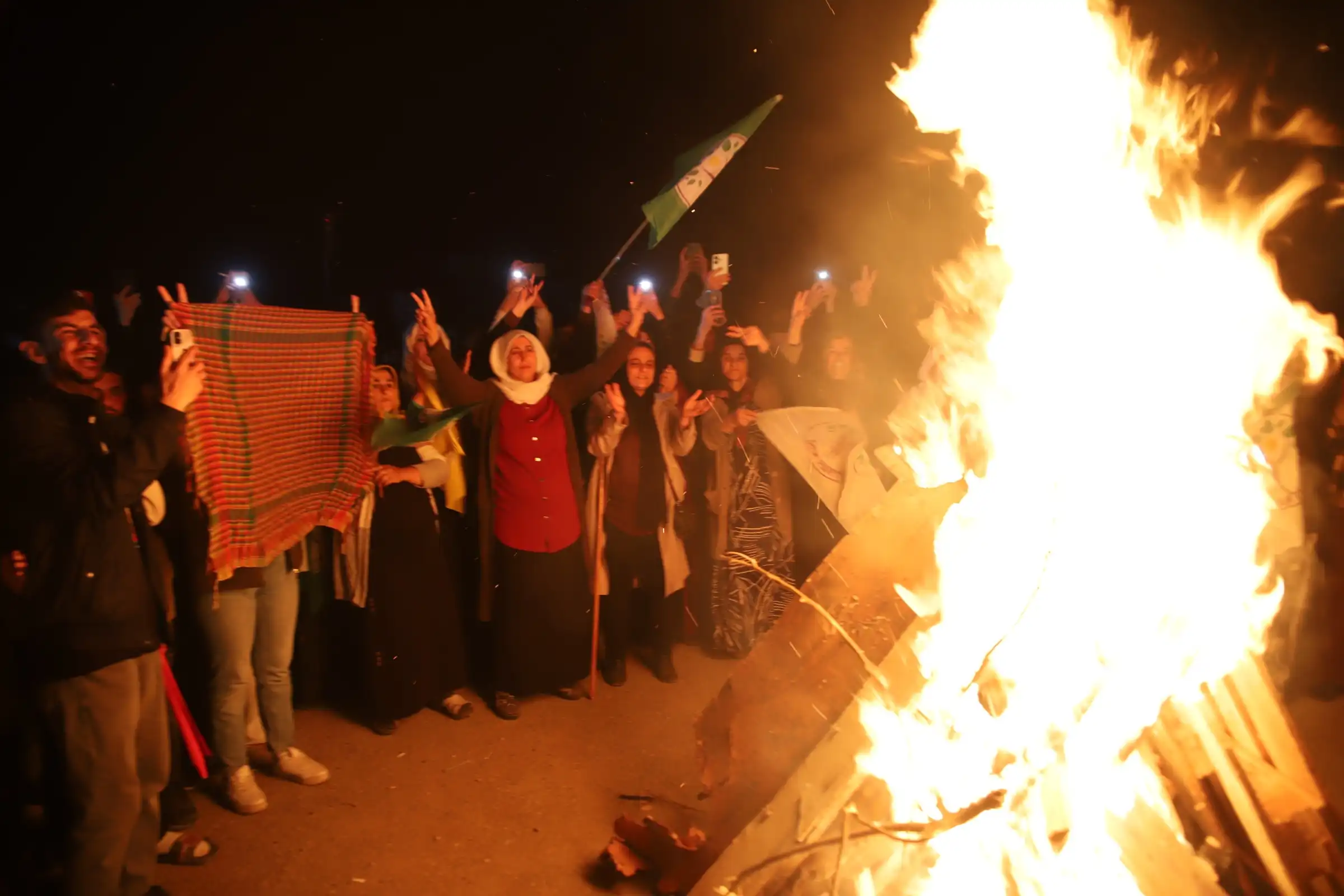 Açıklamanın ardından yakılan ateşin etrafında halaylar çekildi. Kutlama “Newroz pîrozbe”, “Bijî berxwedana ciwanan” ve “Bijî berxwedana Rojava” sloganlarıyla sona erdi.