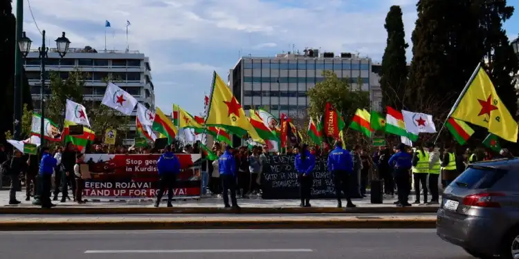 Yunanistan’ın başkenti Atina’da bugün saat 14.00’te Syntagma Meydanı’nda bir araya gelen eylemciler, sloganlar ve basın açıklamalarıyla Rojava halkıyla dayanışma mesajı verdi. Eylemde sık sık “Bijî Berxwedana Rojava”, “Bijî Kurdistan” sloganları atılırken, saldırıların derhal durdurulması çağrısı yapıldı.