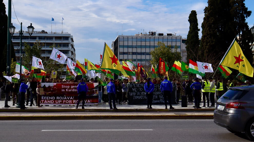 Atina’da Rojava’ya yönelik saldırılar protesto edildi