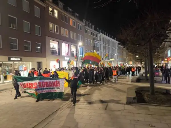 Almanya’nın Lübeck kentinde, Civaka Azad Lübeck’in organize ettiği kitlesel yürüyüşle Rojava ve Rojhilat Kürdistanı’nda devam eden saldırılar protesto edildi. 19 Ocak 2026 Pazartesi günü saat 17.00’de başlayan yürüyüş, Kürdistan şehitleri anısına yapılan bir dakikalık saygı duruşu ile başladı.