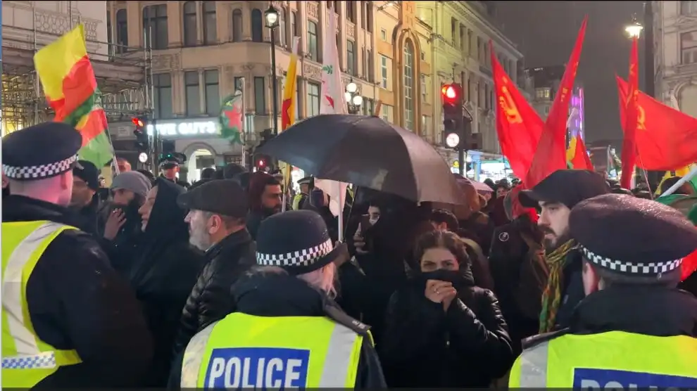 İngiltere’nin başkenti Londra’’da Kürdistanlılar kesintisiz bir şekilde Rojava direnişini sahiplenme eylemlerini sürdürüyor. Kürdirstanlılar soğuk ve yağmura aldırış etmeden akşam saatlerinde kentin en popüler istasyonlarından Piccadilly Circus İstasyonu önünde bir araya gelerek, Türk devlet destekli HTŞ ve cihadist çetelerin Rojava kentlerine yönelik saldırıları protesto edildi.