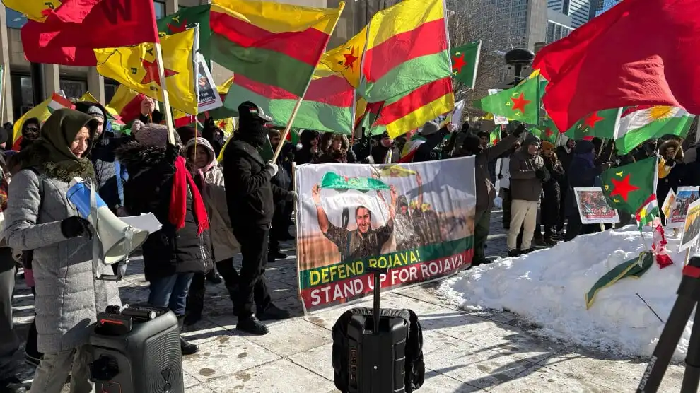 Toronto ve Vancouver’da bir araya gelen kitle, sloganlar ve marşlar eşliğinde ABD Konsolosluğu önüne yürüdü. Yürüyüş boyunca “Bijî Rojava”, “Bijî Kurdistan” sloganları yankılandı. Eylemciler, Kanada genelinde kesintisiz eylem kararlılığını sürdüreceklerini vurguladı.