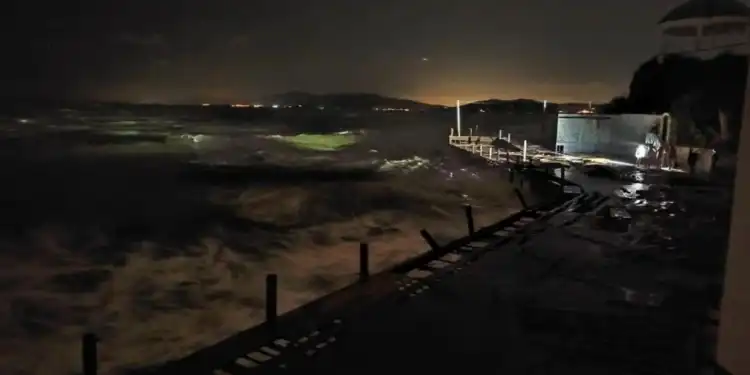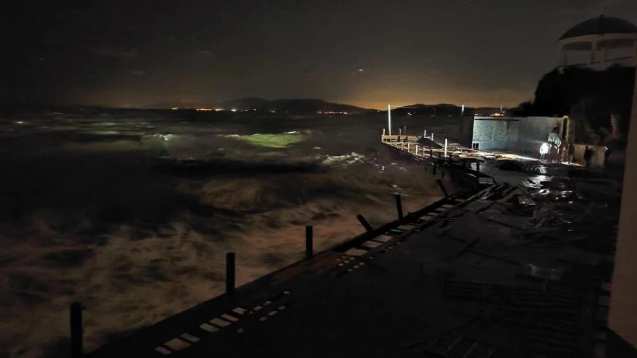 Aydın’ın Kuşadası ilçesinde, bir otelin önündeki iskelede bakım onarım çalışması yapan üç işçi kuvvetli fırtına nedeniyle dengelerini kaybederek denize savruldu. İşçiler, dalgalarla açığa sürüklenirken, durumu fark eden otel çalışanlarının bildirmesi üzerine olay yerine ekipler sevk edildi.
