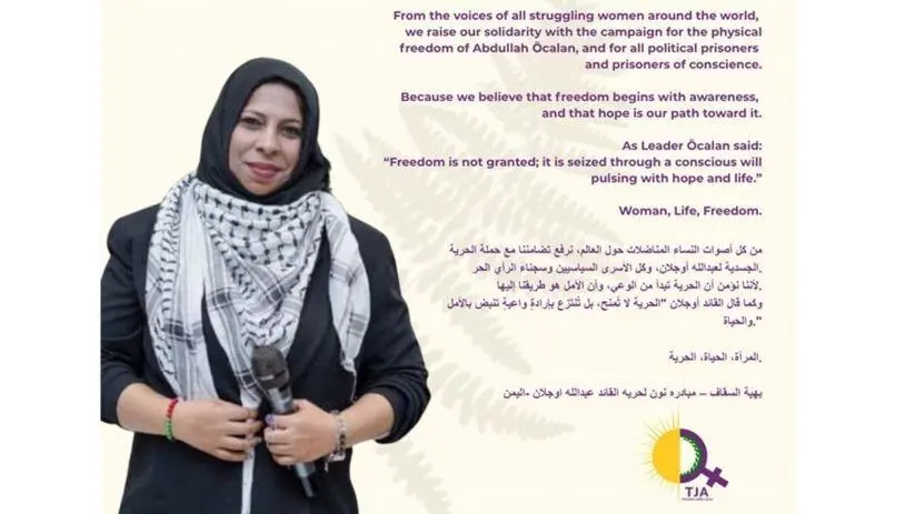 Bahia Al-Saqqaf, mesajında Abdullah Öcalan’ın sözlerini hatırlatarak şunları dile getirdi:
