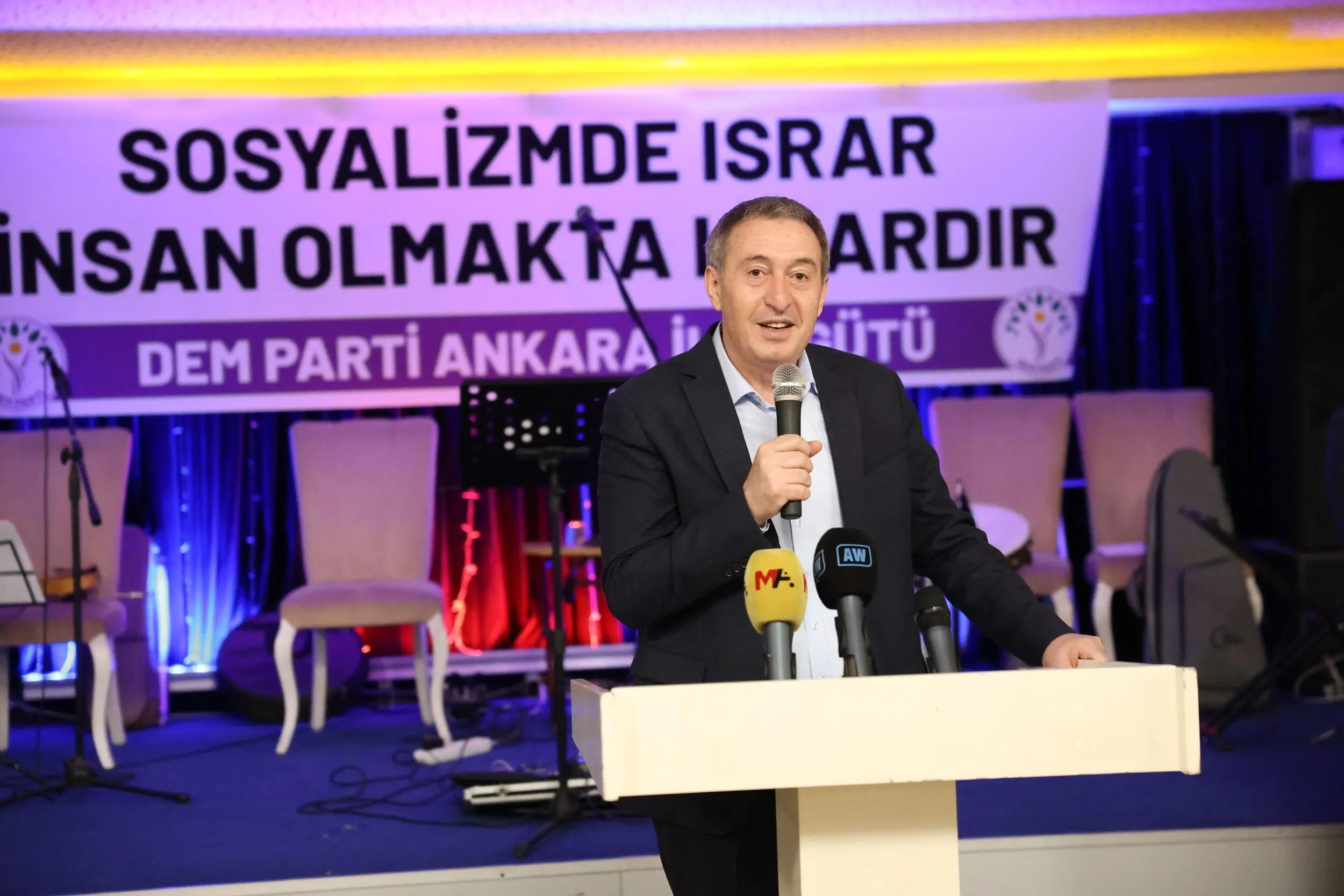 Halkların Eşitlik ve Demokrasi Partisi (DEM Parti) Ankara İl Örgütü, Ankara’nın Çankaya İlçesi Dikmen Mahallesi’nde bulunan bir düğün salonunda dayanışma yemeği düzenledi. Etkinliğe DEM Parti Eş Genel Başkanı Tuncer Bakırhan, DEM Parti üyeleri, demokratik kitle örgütleri ve çok sayıda yurttaş katıldı.