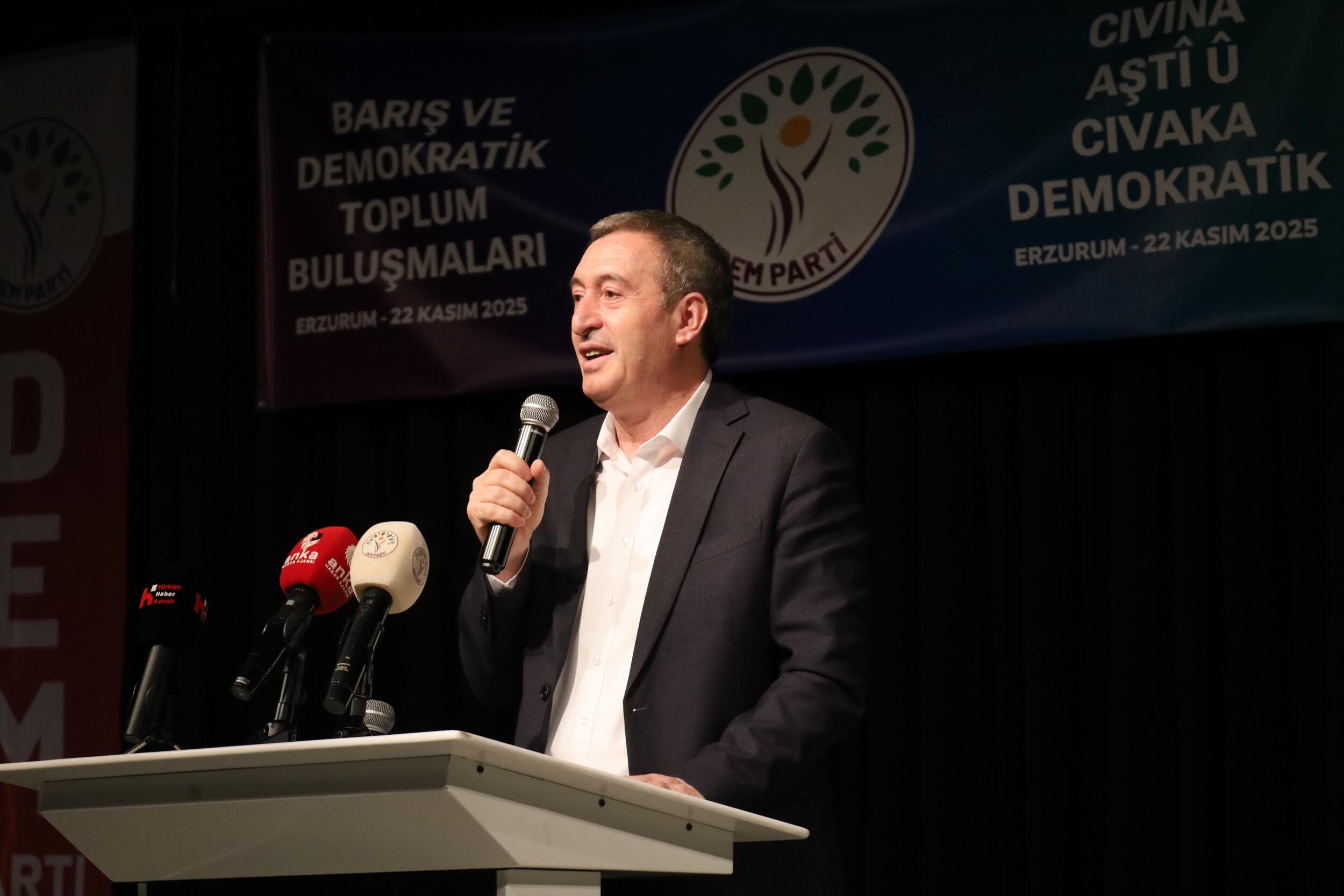 Halkların Eşitlik ve Demokrasi Partisi (DEM Parti) Erzirom İl Örgütünün, “Demokratik Toplum Buluşmaları” kapsamında düzenlediği toplantı DEM Parti Eş Genel Başkanı Tuncer Bakırhan, Halkların Demokratik Kongresi (HDK) Eş Sözcüsü Meral Danış Beştaş ve İmralı Heyeti üyesi Pervin Buldan ile yüzlerce kişinin katılımıyla başladı.