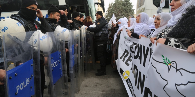 Polis, annelerin yürüyüşe geçmesini engellemek için barikat kurdu. Anneler “Bijî berxwedana Rojava”, “Jin, jiyan, azadî”, “Savaşa hayır barış hemen şimdi” sloganları ile barikat önünde direnişini sürdürüyor.