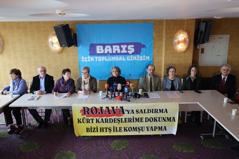 Barış İçin Toplumsal Girişimin, “Rojava’ya saldırmayın Kürt kardeşlerimize dokunmayın, bizi HTŞ’yle komşu etmeyin” imza kampanyasına bin 381 kişi destek verdi. Kampanyaya dair  imzacıların da katılımıyla Taksim Hill Otel’de basın toplantısı gerçekleştirildi. Basın metnini Yazar Ayşegül Devecioğlu okudu.
