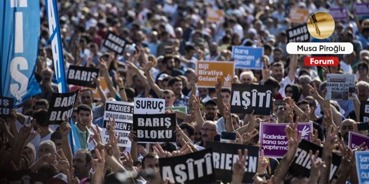 Kitlelerin kaygıyla izlediği süreç, siyasal öznelerin bir çeşit kayıtsızlığı altında devlet ile Abdullah Öcalan’ın görüşmelerine terk edilmiş, toplumsal muhalefet barış sürecinin dışına çekilip, izleyici konumuna geçmiştir. Barışın toplumsallaştırılması, mücadelenin yükseltilerek görüşmelerin demokratik bir olgunluğa doğru ilerlemesi için harcanması gereken emek ve çaba, yan yana durmak zorunda olan güçler arasındaki ayrım noktalarını belirginleştirmek için harcanmaktadır.