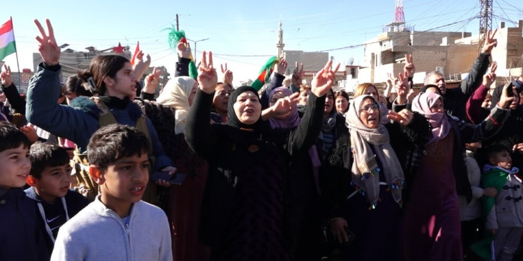 Dêrik’in ardından Qamişlo’ya ulaşan Başûr halkı, kentteki Sewama Kavşağı’nda bölge halkı tarafından coşkuyla karşılandı. Seferberliğe katılan gençleri karşılayan Qamişlolu anne Viyan Mihemed, Kürt halkının birliğine dikkat çekerek, “Kürdistan’ın dört parçasındaki halkımıza sesleniyoruz: Biz biriz. Cephelerde direnen savaşçılarımızın yanındayız. Kürt halkı bilsin ki sonuna kadar birlikte olacağız” dedi.