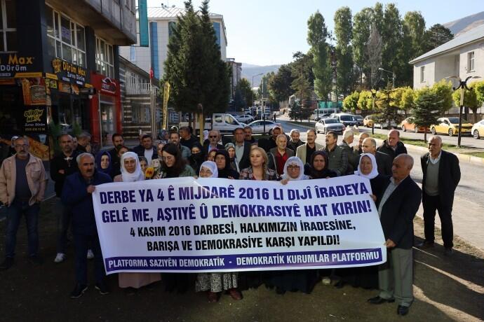 Halkların Eşitlik ve Demokrasi Partisi (DEM Parti) Bedlîs (Bitlis) il ve ilçe örgütleri, Halkların Demokratik Partisi’ne (HDP) dönük 4 Kasım 2016’da düzenlenen siyasi operasyonların yıl dönümüne dair basın açıklaması yaptı. DEM Parti Tetwan İlçe Binası önünde gerçekleştirilen açıklamaya, siyasi partiler ve demokratik kurum temsilcileri katıldı.