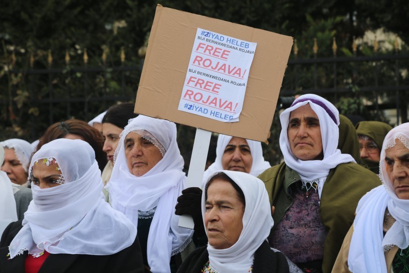 Barış Anneleri’nden Senayet Ata, “Halep’te Rojava’da Kürtlere dönük saldırıları kabul etmiyoruz. Onlara yapılan saldırı, hakaret bütün Kürt halkına yapılmıştır. Biz bu saldırıları artık kabul etmiyoruz. Biz barış sürecini kimse ölmesin, böylesi durumlar yaşanmasın diye istiyoruz. Halep’teki saldırılar ‘insanım’ diyenin kabul edeceği şeyler değildir. Halkımıza dönük saldırıları gördüğümüzden beri gözümüze uyku girmedi” ifadelerini kullandı.
