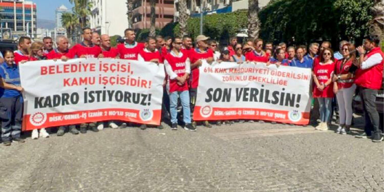 DİSK Genel-İş, KHK ile kadro verilen işçilerin mağduriyetlerinin giderilmesi için İzmir’de sokağa çıktı