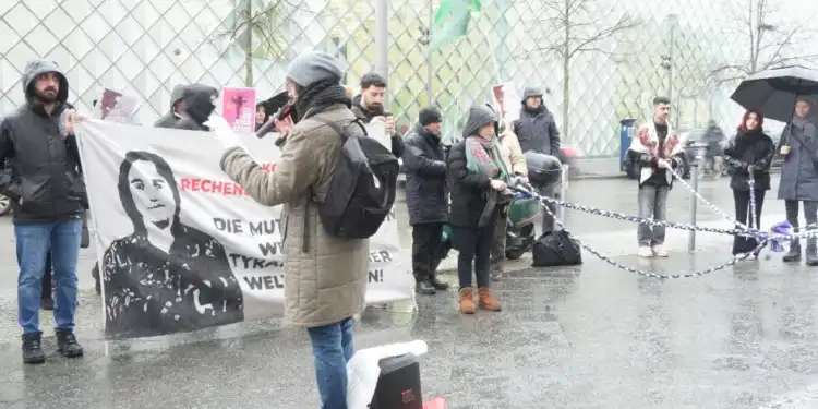 Rojava’da cihatçı bir çete grubunun yayımladığı videonun ardından dünya genelinde YPJ ile dayanışma mesajları paylaşılmış, konu sosyal medyada geniş yankı uyandırmıştı. Bu sürecin ardından Der Spiegel’de yayımlanan ve çetelerin şiddetini aklayan yazı, eylemde protesto edildi.