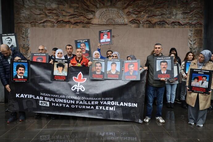 Êlih’te ise 711’inci haftasına giren İHD ve kayıp yakınları eylemi, Gülistan Caddesi’nde bulunan İnsan Hakları Anıtı önünde sürdü. Bu haftaki eylemde, Kasım 1994 yılında İstanbul’da kaybedilen ve bir daha kendisinden haber alınamayan Orhan Yakar’ın akıbeti soruldu.