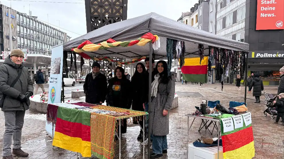 Almanya’nın Bielefeld kentinde Êzidî Kürdistanlılar ve dostları, Rojava’ya yönelik saldırılara karşı yürüyüş düzenlerken, kent merkezinde kurulan yardım çadırında Rojava için insani yardım kampanyası yürütüldü