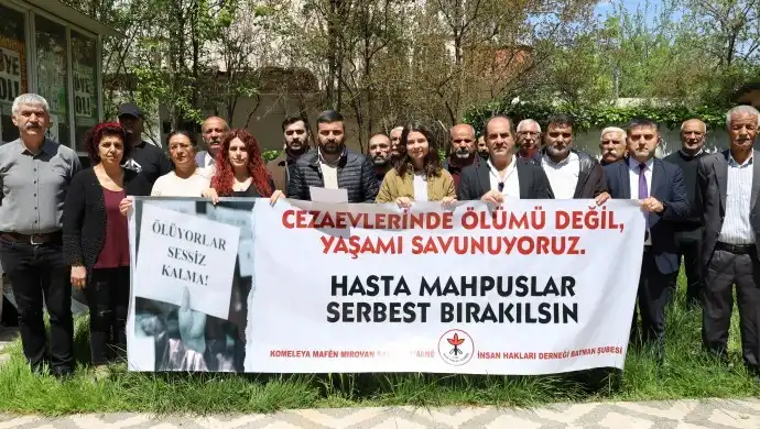 İHD Êlih Şubesi de, dernek bahçesinde açıklama yaptı. “Cezaevlerinde ölümü değil, yaşamı savunuyoruz. Hasta mahpuslar serbest bırakılsın” pankartının taşındığı açıklamada, basın metnini İHD Şube Eşbaşkanı Ahmet Şiray okudu. Tutsakların yaşam haklarının korunması ve tecrit uygulamalarından vazgeçilmesi çağrısında bulunan Şiray, tutsakların taleplerinin görmezden gelen yetkililerin gelişebilecek kötü sonuçlardan sorumlu olduğunu söyledi.