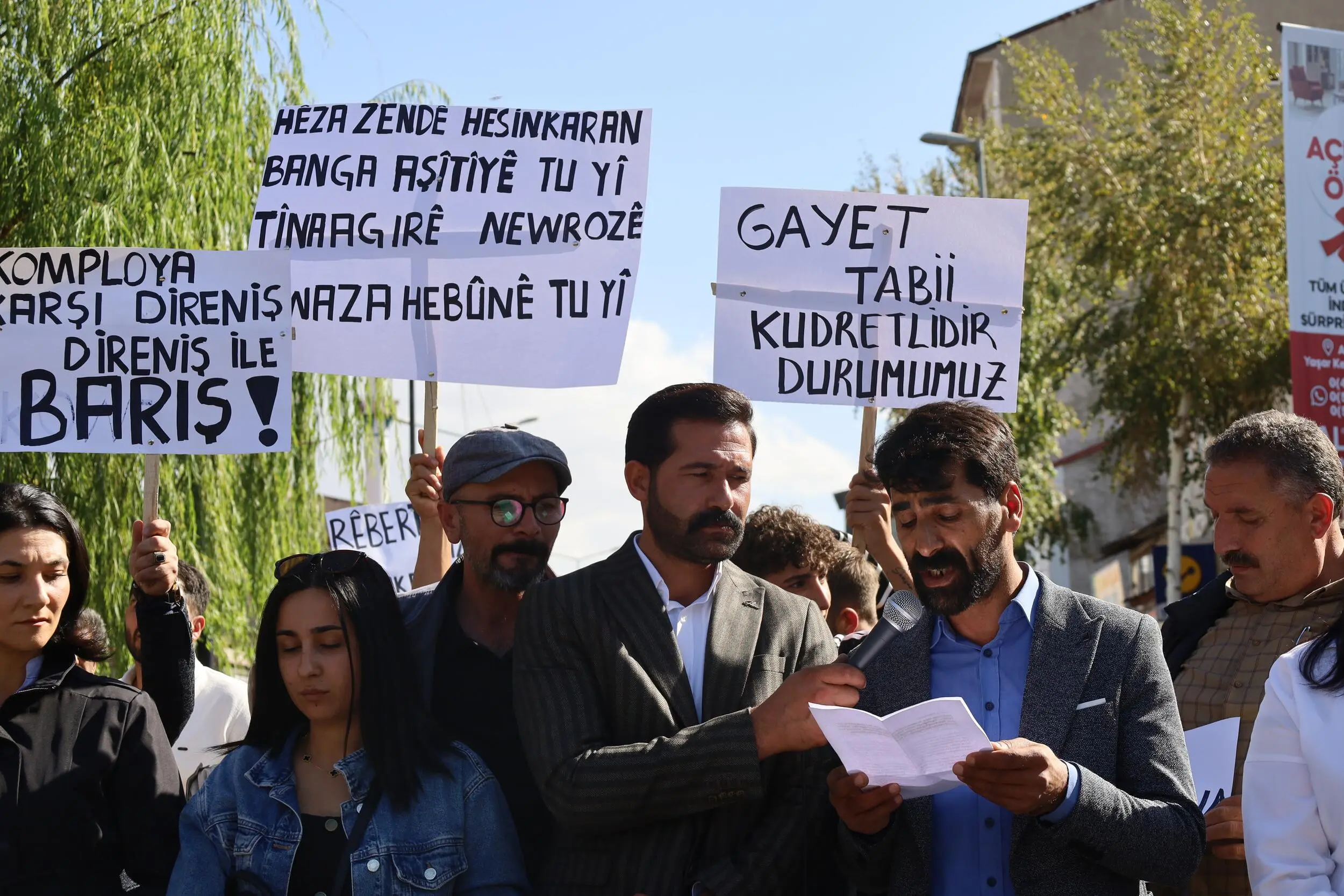 Agirî merkezinde yapılan açıklamaya ilçelerden de siyasi parti ve sivil toplum örgütü temsilcilerinin yanı sıra çok sayıda kişi katıldı. Demokratik Platformlar Kurumu tarafından yapılan basın açıklamasında, “Bi rêbertîya azad ber bi ciwaka azad ve” pankartı açılırken, “Gayet tabi kudretlidir durumumuz”, “Komploya karşı direniş, direniş ile barış” ve “Bijî berxwedana Îmrali” dövizleri taşındı.