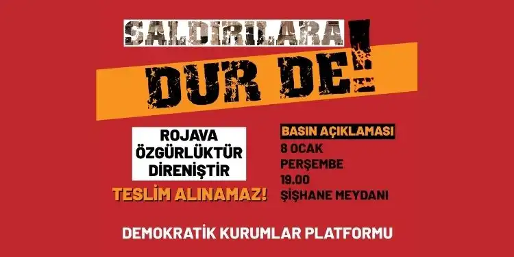 Demokratik Kurumlar Platformu, tüm halkları ve demokratik kamuoyunu eylemlere katılarak Rojava ile dayanışmayı büyütmeye çağırdı.