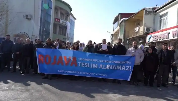Demokratik Kurumlar Platformu, Amed’in Pasûr (Kulp) ilçesinde Kuzey ve Doğu Suriye ile Rojava’daki saldırılara karşı Cengiz Topel Caddesi’nde açıklama yaptı. “Rojava vicdandır mücadeledir, özgürlüktür teslim alınamaz” pankartının ardından açıklamayı yapan DEM Parti İlçe yöneticisi Asım Özgen, saldırıları kınadı.