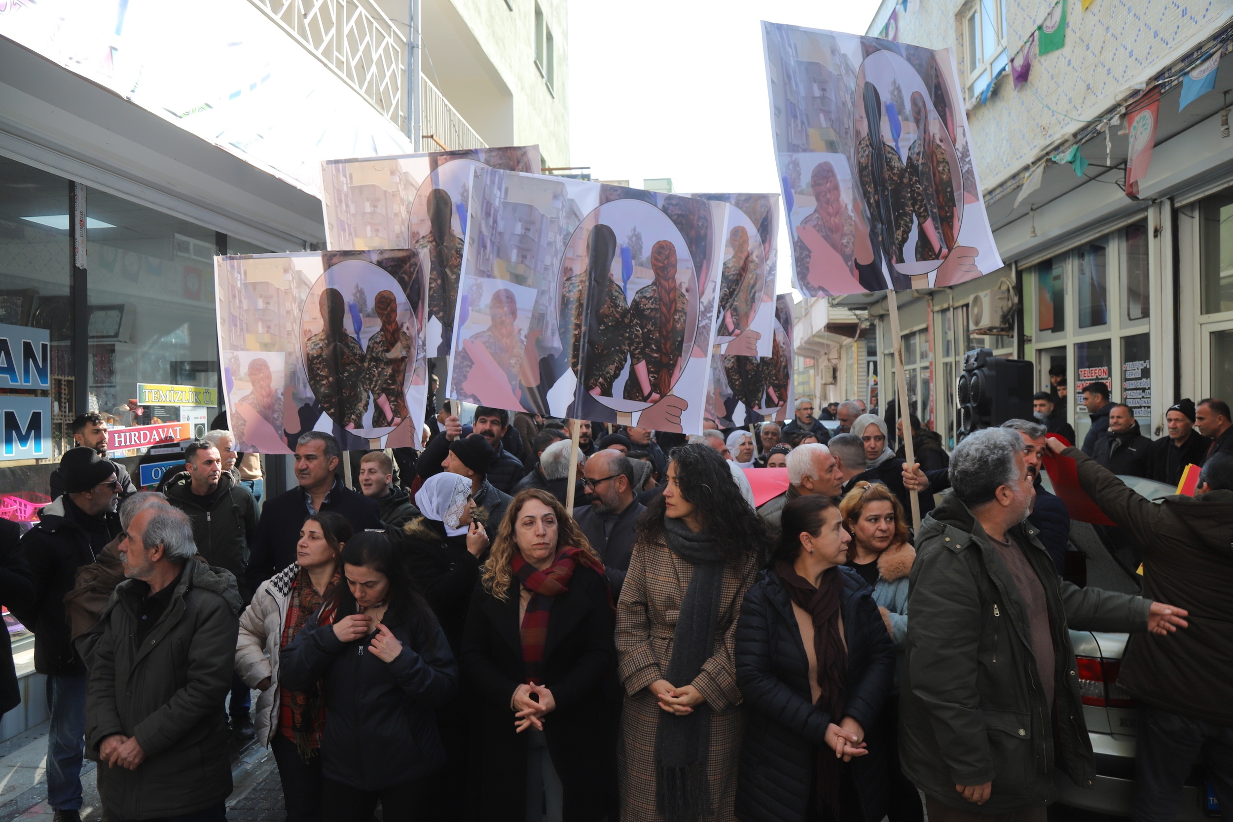 Devamında konuşan DEM Parti Bedlîs Milletvekili Semra Çağlar Gökalp, “Rojava bizler için bir toprak parçası olmaktan öte bir yaşamın sembolüdür” dedi. Kürt kadın savaşçının saç örgüsünün kesilmesini hatırlatan Semra Çağlar Gökalp, “Saçlarımız sizin kabusunuz olmaya devam edecektir” diye konuştu.